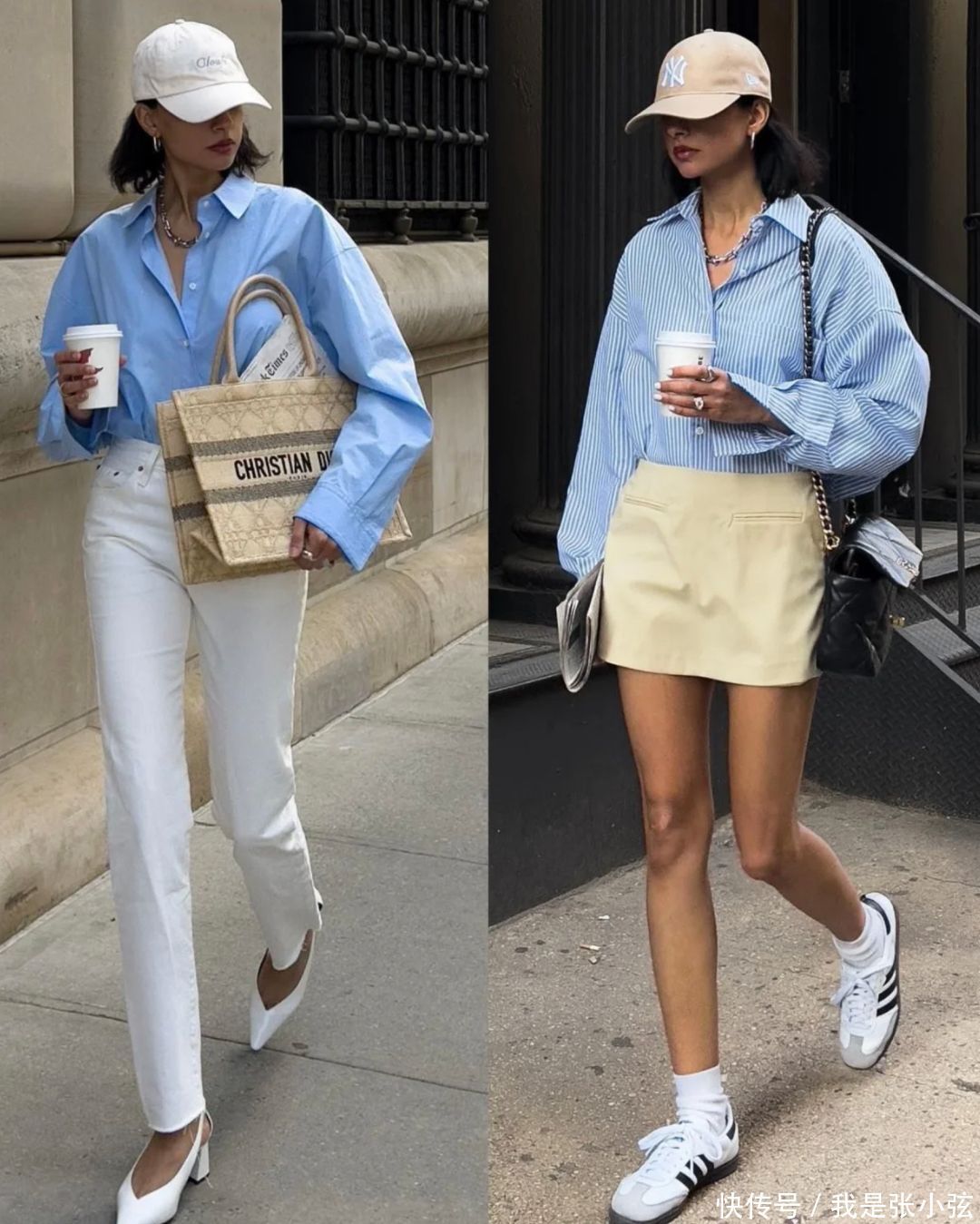 不想被无彩色系占满的话,就不错来尝试一下无彩色和彩色的组合公式,无论是跟哪种基础色进行搭配,蓝色都是最好优选。浅蓝色和白色的搭配,崭新高雅又不失机尚气味,何况,浅蓝色很安妥用于衬衫当中,去更好的提亮咱们的肤色,杰出举座的穿衣魄力。